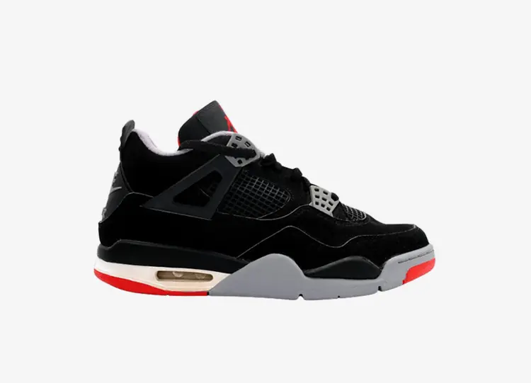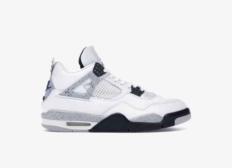 Après la sortie de deux coloris originaux de la Air Jordan 4, une nouvelle Retro+ émerge avec une empeigne en cuir premium et quelques autres changements au design classique. Les pièces triangulaires et la fenêtre sur le côté sont maintenant en cuir au lieu de TPU, un Jumpman cousu remplace le patch de la languette, et le NIKE AIR est supprimé sur le talon et remplacé par un Jumpman. La semelle intermédiaire présente des éclaboussures de peinture similaires à celles de la White/Cement, et l'unité Air visible est toujours intacte. AIR JORDAN IV RETRO