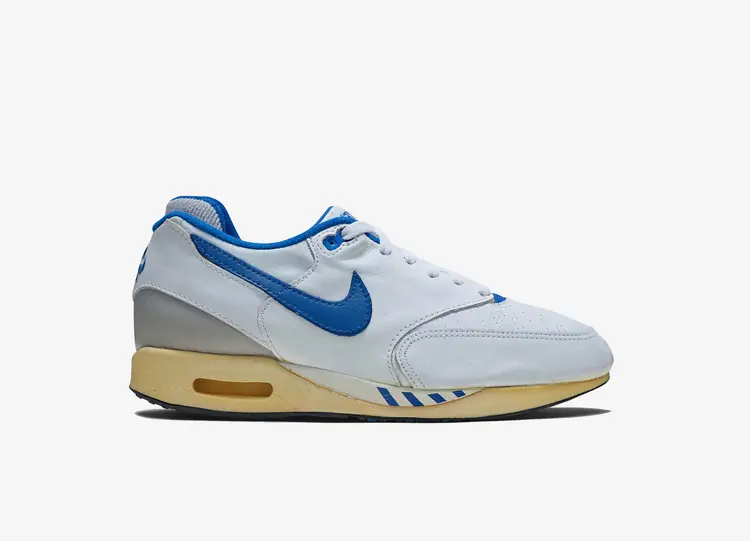 La running de 1987 (ou 1988 selon certaines sources) est encore plus rare qu’une Air Max 1 OG Big Bubble. Soit les gens l’ont oubliée soit ils n’ont point connaissance de l’existence du Holy Grail. Le fait qu’aucune rétro n’existe participe à entretenir sa légende. On ne sait quasiment rien de son histoire. Tout porte à croire que Tinker Hatfield en est le créateur. La bulle visible constitue une preuve irréfutable. La Walker Max ressemble à un mélange des Air Max 1 et Air Max Light. Les rayures de sa midsole similaires à celles des boîtes de l’époque la rendent unique. Concernant les coloris, seulement 2 sont connus. Le plus emblématique reste celui au Swoosh bleu, une couleur qui n’est pas sans nous rappeler la Nike Air Revolution. Et puis il y a la blanche et rouge que porte le nageur Mark Spitz sur une photo datant de 1990. NIKE AIR WALKER MAX