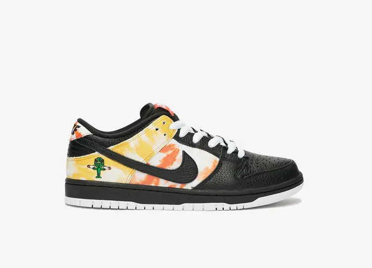 La Dunk SB Low Tie-Dye Raygun - Black est une des chaussures préférées des fans de Nike SB à l'époque de la Pink Box. Le design est actualisé avec un effet tie-dye en l'honneur de Sandy Bodecker, le défunt cadre de Nike à qui l'on doit le succès de la division skateboarding du Swoosh. La chaussure elle-même s'inspire des Roswell Rayguns, une équipe ABA fictive présentée dans une campagne marketing de Nike Basketball en 2002. NIKE SB DUNK LOW
