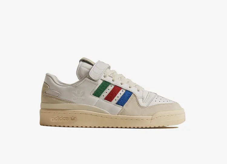 L'extérieur est assez simple, à l'exception des perforations en forme de flocon de neige à l'avant du pied. Des bleus clairs habillent chacun des suèdes au niveau du talon, de l'œillet et de l'orteil, tandis que des cuirs blancs enveloppent le dessous. Le Swoosh, quant à lui, ajoute un éclat d'or foncé dont la finition correspond à celle du point de la semelle intermédiaire ainsi qu'aux paillettes festives sur l'ensemble de la semelle. Le nom de Cliver termine le marquage sur l'étiquette tissée ainsi que sur la semelle intérieure dont l'impression est simple et habillée du logo sur un pied et sur le thème de Noël sur l'autre. NIKE SB DUNK LOW