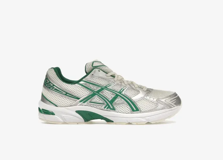 La HAL STUDIOS x ASICS Gel 1130 'Forest' est le deuxième volet de la série de collaboration entre les deux marques. Inspirée par les forêts luxuriantes du Japon, ainsi que par les sanctuaires shintoïstes qui s'y trouvent, cette chaussure de sport présente une tige en mesh vert aéré avec des détails en daim hirsute sur l'embout et les bandes latérales caractéristiques. Des empiècements en cuir blanc cassé et marron complètent la palette terreuse de la chaussure, tandis qu'un chausson co-brandé à la finition orange vibrante apporte une touche de couleur contrastée. L'amorti léger est assuré par une semelle intermédiaire en mousse blanc cassé avec un insert GEL visible au niveau du talon. ASICS GEL-1130 MK-II