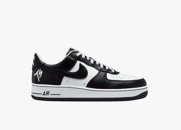 Célébrant le collectif hip-hop dirigé par Fat Joe, la Terror Squad x Nike Air Force 1 Low 'Blackout' reprend un échantillon original, qui était auparavant limité à des coloris exclusifs pour les amis et la famille datant de 2005. La low-top est dotée d'une tige en cuir lisse, d'une base blanche, de superpositions noires contrastées et d'un Swoosh de couleur assortie. Le logo "TS" de Terror Squad est brodé sur le talon latéral, tandis que la languette arrière porte l'inscription "JC", abréviation de "Joey Crack". L'ancrage de la sneaker est assuré par une semelle cupsole traditionnelle, soulignée par des parois latérales blanches et une semelle extérieure en caoutchouc noir durable. NIKE AIR FORCE 1