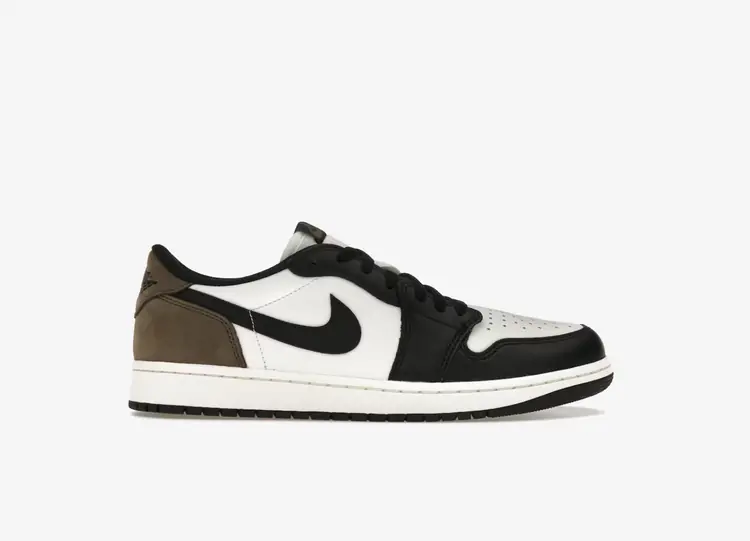 La Air Jordan 1 Retro Low OG 'Mocha' présente une tige en cuir blanc avec des accents noirs contrastés sur le revêtement de l'avant-pied et le Swoosh. Le nubuck marron enveloppe la partie supérieure du talon et la languette arrière, marquées d'un logo Wings en noir. La marque Nike Air orne la languette tissée et la semelle intérieure. Une subtile finition blanc cassé recouvre la semelle intermédiaire, équipée d'une semelle Air encapsulée et soutenue par une semelle extérieure en caoutchouc noir. AIR JORDAN I RETRO LOW