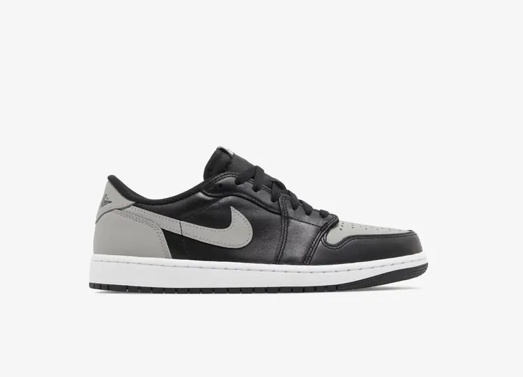 L'édition 2024 de l'Air Jordan 1 Retro Low OG 'Shadow' reprend un coloris original de la première chaussure signature de Michael Jordan. Présentée sous la forme d'une low-top, la silhouette vantée arbore une tige en cuir, avec une base noire et des accents gris neutre sur la zone des orteils, le Swoosh, le talon et la languette arrière. Cette dernière est estampillée du logo emblématique Wings, tandis qu'une étiquette Nike Air tissée orne la languette en nylon noir. La sneaker repose sur une semelle intermédiaire en caoutchouc blanc, dotée d'une unité Air-sole encapsulée dans le talon et soutenue par une semelle extérieure en caoutchouc noir très adhérente. AIR JORDAN I LOW OG