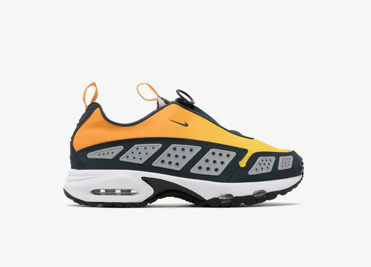 La Supreme x Nike Air Max 1 '87 SP 'Speed Yellow' est tirée d'un pack de quatre pièces réalisé en collaboration. Elle présente une tige en cuir jaune superposé avec un Swoosh blanc en peau de serpent. Un mini-Swoosh brodé orne l'avant-pied latéral. La marque Supreme est rappelée par des lacets moulés, une étiquette co-brandée sur la languette et la mention « World Famous » inscrite sur le talon arrière. La semelle intermédiaire en polyuréthane blanc, complétée par une semelle Air visible, offre un amorti léger à chaque pas. NIKE AIR MAX 1 87