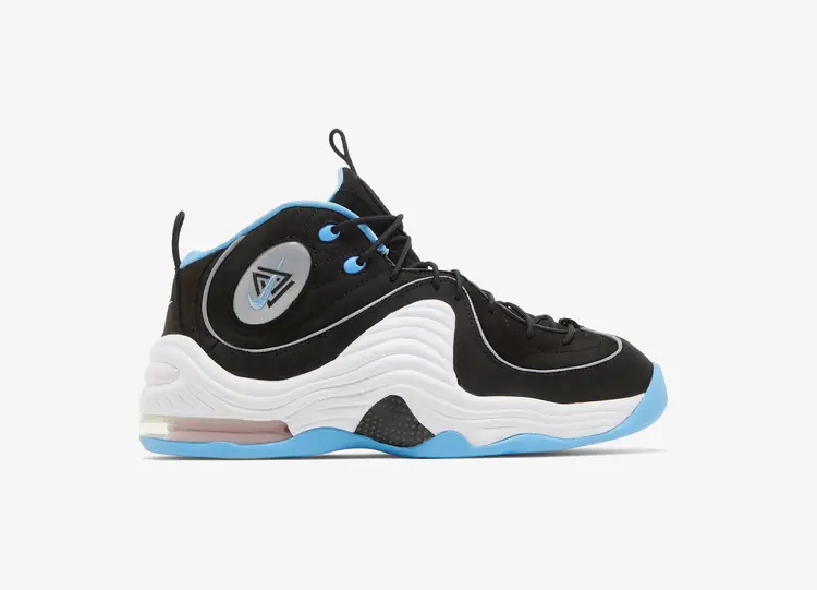 Le modèle Social Status x Nike Air Penny 2 'Playground' est la suite de la collaboration Air Max Penny 1 du détaillant en juillet 2022. Lancée aux côtés d'une paire équivalente en 'Sail', cette édition 'Black' rend hommage à Penny Hardaway avec des couleurs qui rappellent la version OG de 1996 inspirée d'Orlando. Le mid-top arbore une tige en nubuck noir avec des accents contrastés bleu poudre sur les œillets moulés et la doublure du col en textile. Le logo 1 Cent de Penny orne la languette, tandis qu'une capsule réfléchissante sur le col latéral affiche le double marquage Swoosh et Social Status. Une semelle intermédiaire légère en Phylon est équipée d'un coussin Zoom Air à l'avant du pied et d'une unité de talon Max Air en rose bubblegum. La chaussure est présentée dans un emballage spécial inspiré d'un jouet Lil Penny. NIKE MAX PENNY 2