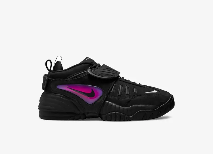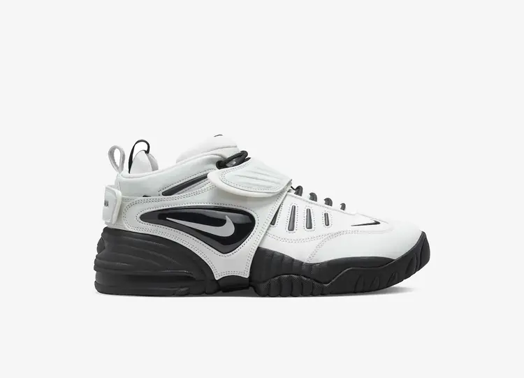 Le modèle Social Status x Nike Air Max Penny 1 'Recess' présente un thème nostalgique centré sur la cour de récréation. Cette version 'Black' réimagine l'OG Air Max Penny 1 de 1995, soulignée par une palette de couleurs familières inspirées par le Orlando Magic. Comme l'original, la tige utilise une construction en nubuck noir avec un panneau blanc contrastant sur le côté latéral. Des Swooshes interchangeables en Velcro ornent le panneau de custode, tandis que le marquage brodé du talon présente un Nike Swoosh intégré au logo Social Status. Sous le pied, la semelle extérieure en caoutchouc bleu translucide est ornée d'un Swoosh surdimensionné et de graphiques inspirés des terrains de jeu. NIKE AIR ADJUST FORCE