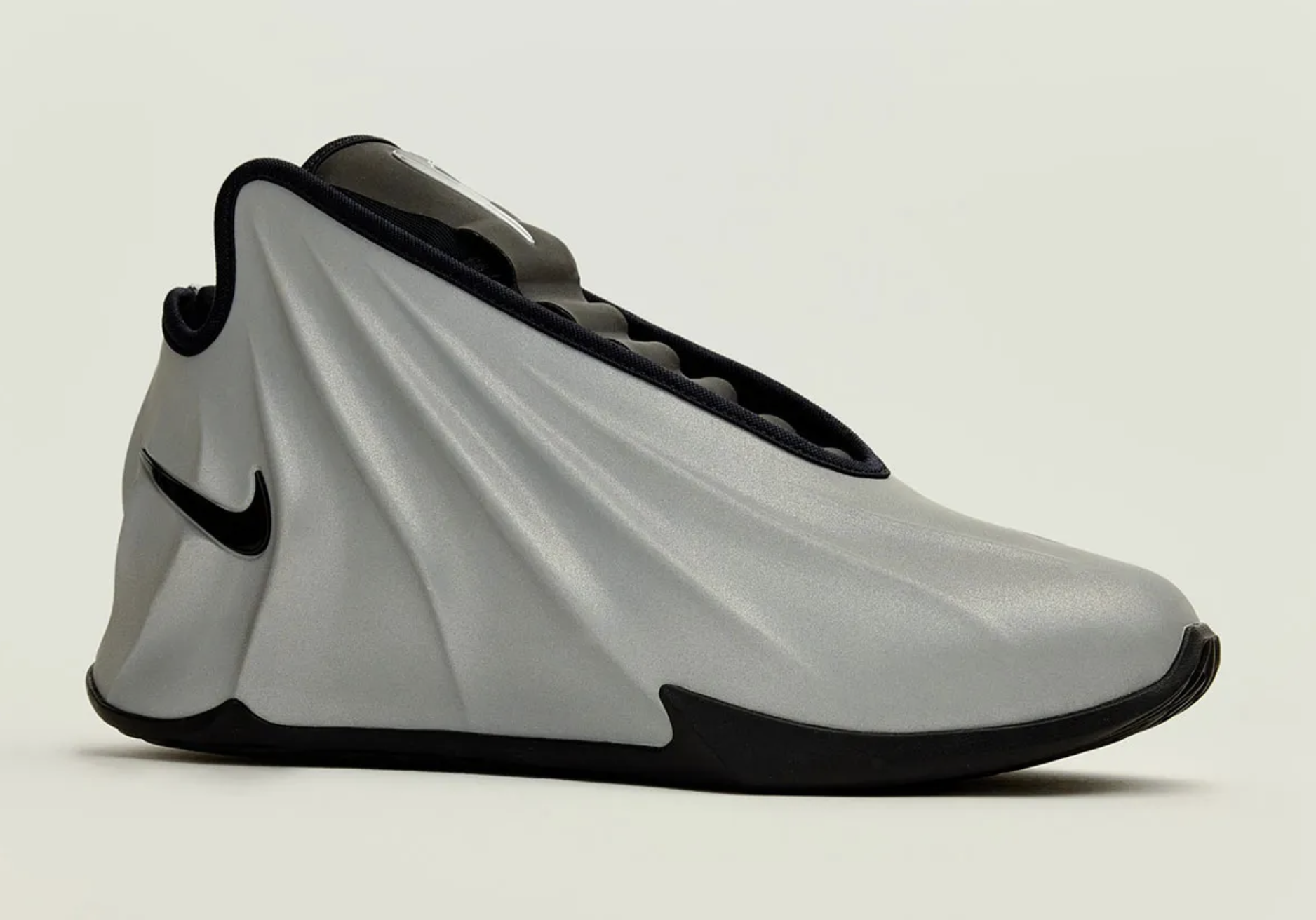Nike repousse à nouveau les limites du design basket-ball avec la GT Future “Metallic Silver / Black”, une interprétation audacieuse de son modèle performance. La tige se pare d’une finition « Metallic Silver » qui capte la lumière comme du métal poli, tandis que le noir structure les zones fonctionnelles — languette, semelle intérieure, Swoosh latéral et semelle extérieure — pour un contraste visuel net et technique.