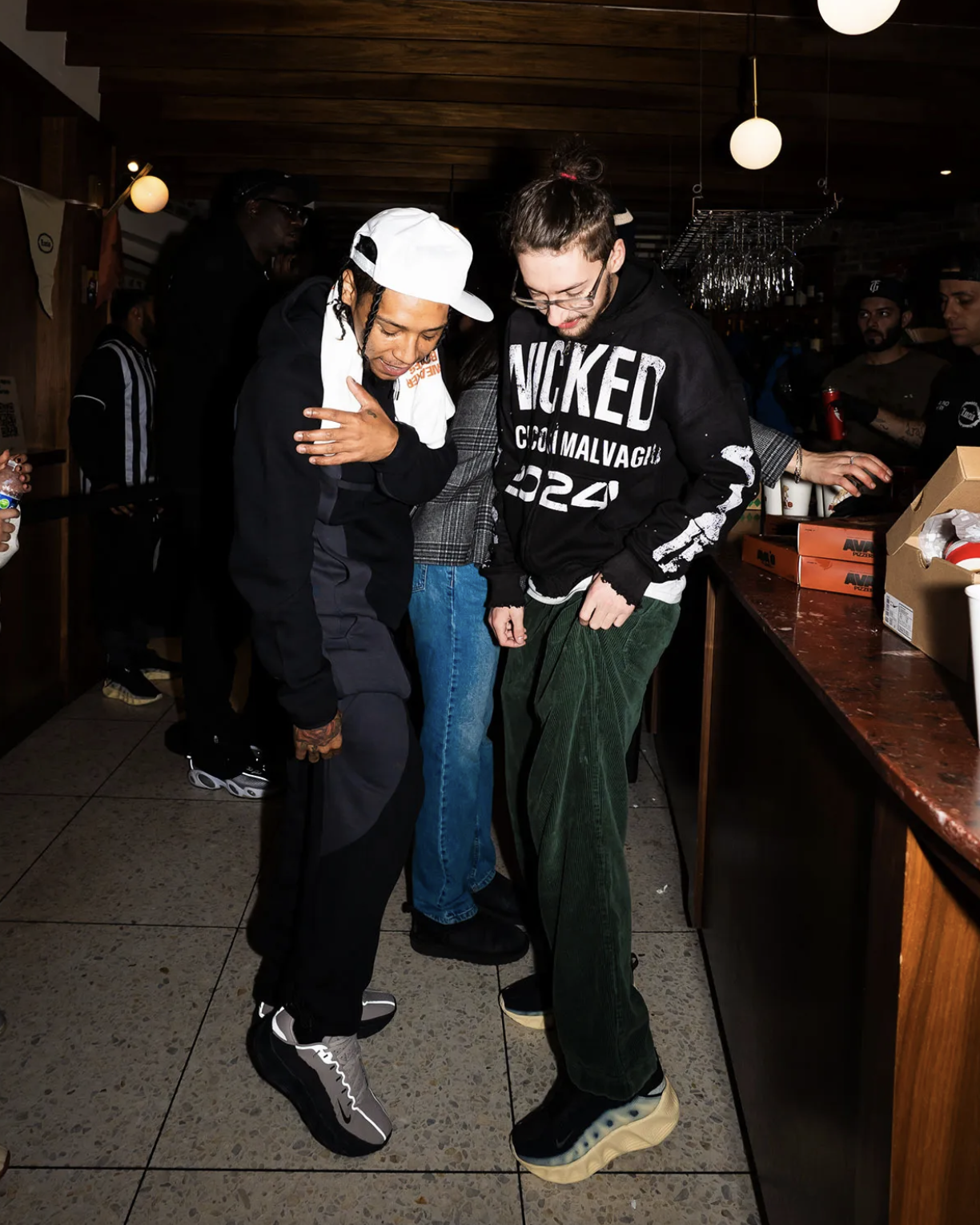 La sneaker elle-même se veut hybride : une semelle équipée de la mousse ReactX, une empeigne légère en mesh et overlays techniques, conçue pour « naviguer les rues imprévisibles de la ville ». L’événement pop-up agit comme une passerelle entre la chaussure et son univers visuel — le bitume, la pizza, le flux urbain.