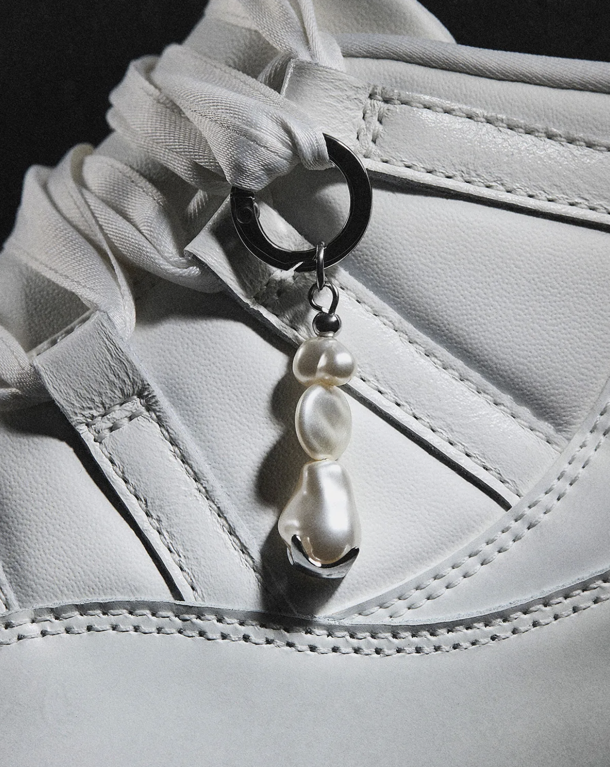 Pour les 30 ans de l’Air Jordan 11, Jordan Brand explore un registre de pure élégance avec la “Pearl”, une déclinaison exclusivement dédiée aux femmes. Habillée d’un cuir blanc nacré qui capte la lumière avec subtilité, la paire se distingue par un détail rare : un pendentif en perle d’eau douce accroché aux lacets, transformant la silhouette en bijou autant qu’en sneaker. La AJ11 “Pearl” joue la carte du lifestyle avec une délicatesse assumée, conservant l’ADN iconique du modèle tout en l’élevant au rang d’accessoire de luxe. Son arrivée est prévue le 11 novembre 2025, une date symbolique qui promet d’ajouter une touche lumineuse à la saison des fêtes.