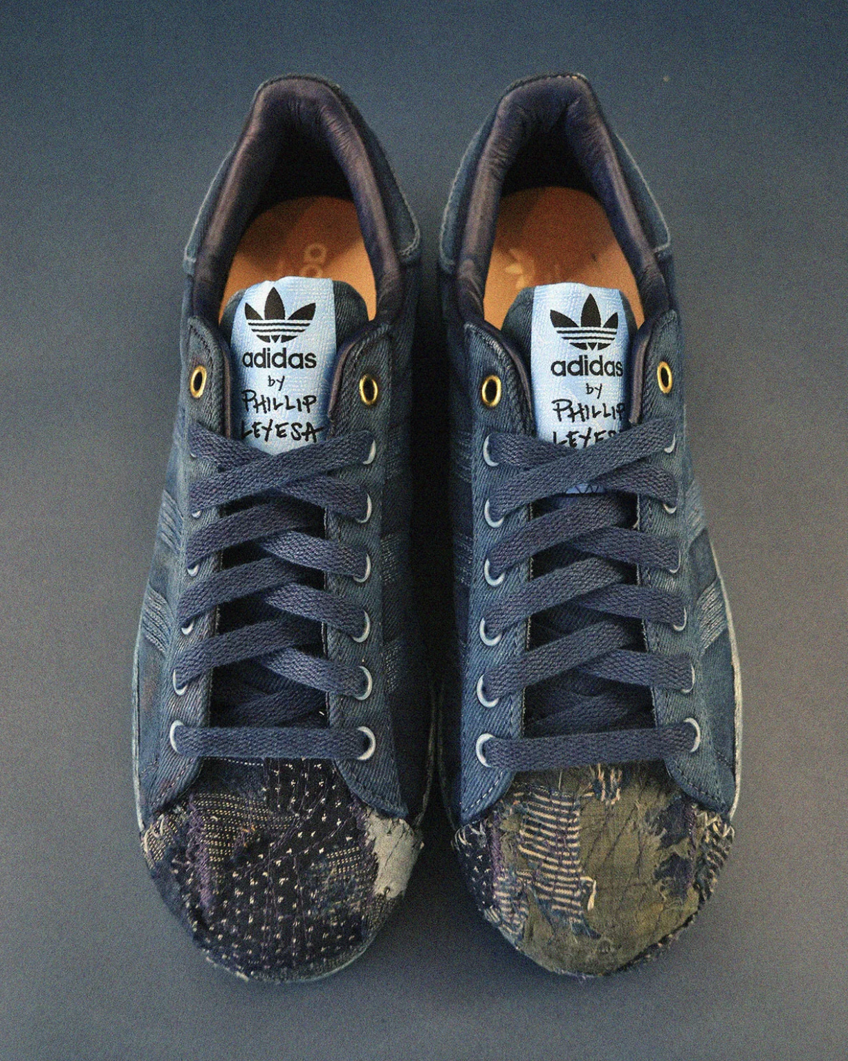 Trois ans après leur premier projet commun, adidas renouvelle sa confiance en PHILLLLLTHY (alias Phillip Leyesa) pour donner une nouvelle vie à la Superstar. Mais cette fois-ci, le point de départ n’est pas une simple customisation : c’est une révision profonde. Sur une édition ultra-rare limitée à dix exemplaires, l’artiste a remplacé la célèbre coque “shell toe” par un patchwork “boro”, cette technique japonaise de réparation par superposition de tissus, valorisant le re-cyclage et la cicatrisation visuelle.