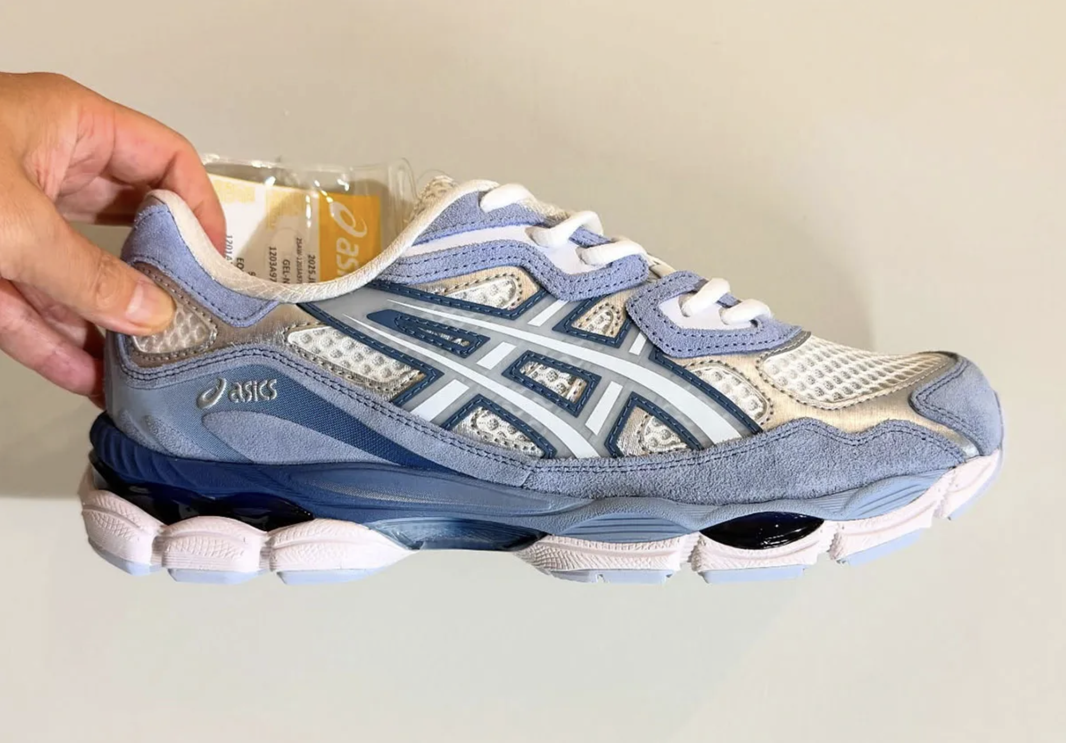 atmos renoue avec ASICS pour injecter une fraîcheur visuelle à la silhouette GEL-NYC : le projet “Iceberg” se distingue d’abord par ses semelles intérieures personnalisées, imprimées d’un iceberg coupé en deux — moitié immergée, moitié visible — comme une métaphore discrète du visible et de l’invisible.