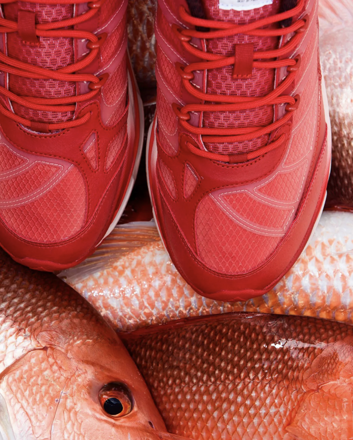 À travers sa nouvelle collaboration, la boutique basée à la Louisiane Sneaker Politics met en lumière l’une de ses inspirations locales les plus tangibles : le poisson Red Snapper, pilier de la pêche commerciale dans le golfe du Mexique. Le modèle choisi, la adidas HRMY (et non “Harmony” comme parfois écrit), embarque un design riche en symboles : un dégradé rouge vif sur les panneaux latéraux évoque l’écaillage d’un snapper, accompagné de détails réfléchissants qui recréent littéralement l’effet “peau mouillée” du poisson après la pêche.