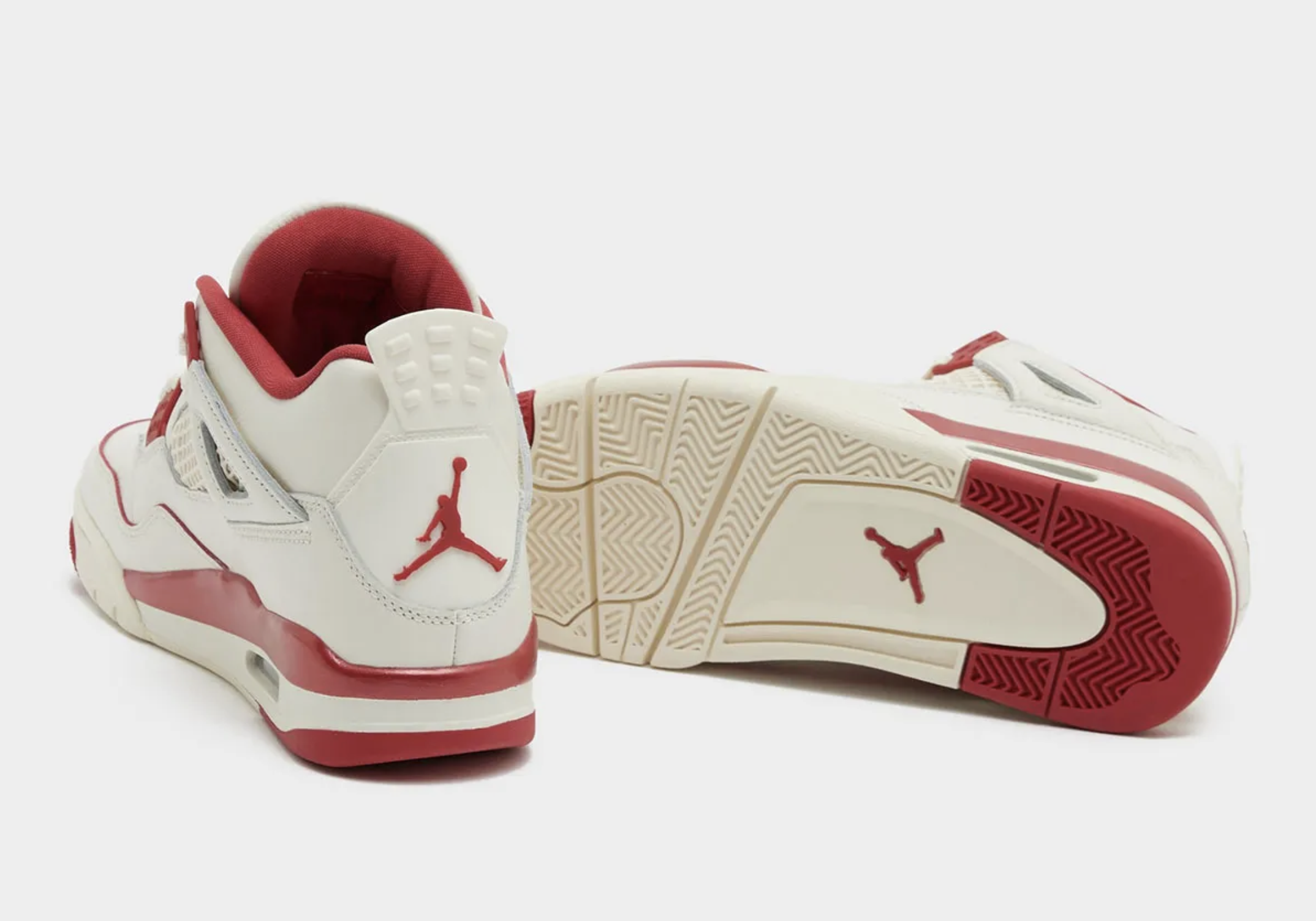 Mais il y a plus : les touches “Sierra Red” surgissent — sur les œillets, les doublures, le logo Jumpman au talon — tandis que le “Tough Red” s’immisce subtilement sur la semelle et les détails, comme un rouge à lèvres appliqué en coulée. Ce n’est pas un simple colorway : c’est un message visuel.