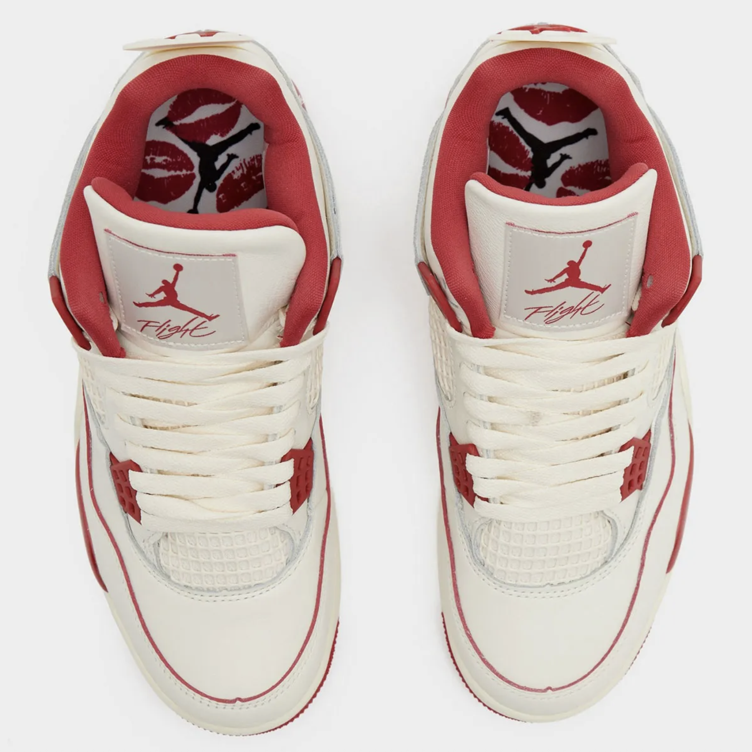 Le clin d’œil le plus drôle ? Des motifs “kiss” imprimés à l’intérieur de la languette et sous la semelle. Une invitation à célébrer l’amour, la passion sneaker et la silhouette AJ4 dans un même mouvement.