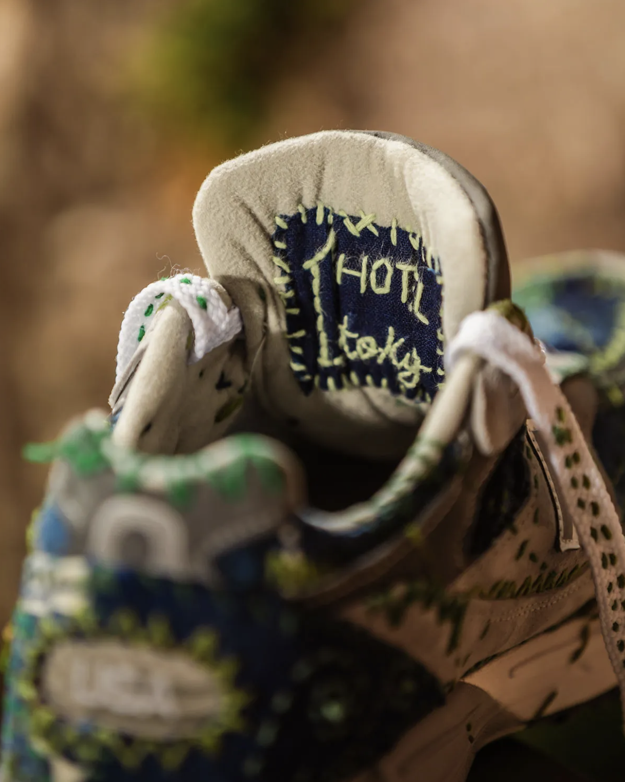 Chaque paire est teinte à la main, selon une approche inspirée des techniques traditionnelles japonaises. Résultat : aucune sneaker n’est identique. Chaque variation de couleur, chaque nuance, devient une trace du processus — une signature invisible mais essentielle.