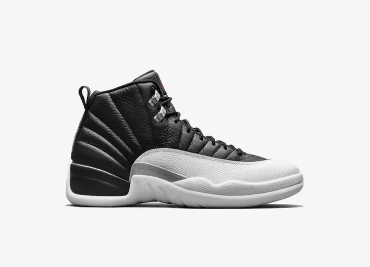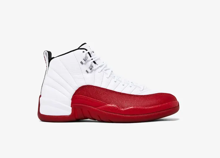 L'édition 2023 de la Air Jordan 12 Retro 'Cherry' réintroduit le coloris OG de la chaussure que Michael Jordan portait lors de son avant-dernière saison de championnat. Soulignée par des lignes de surpiqûres rayonnantes, la tige en cuir blanc est renforcée par des superpositions texturées en lézard dans une finition écarlate audacieuse. Le logo Jumpman est brodé en noir sur la languette, assorti à la doublure textile du col de la chaussure. La chaussure repose sur une semelle intermédiaire en Phylon avec un amorti Zoom Air sur toute la longueur. Sous le pied, la semelle extérieure en caoutchouc rouge semi-translucide révèle des picots d'adhérence à chevrons noirs et une plaque de tige en fibre de carbone apparente. JORDAN XII LOW