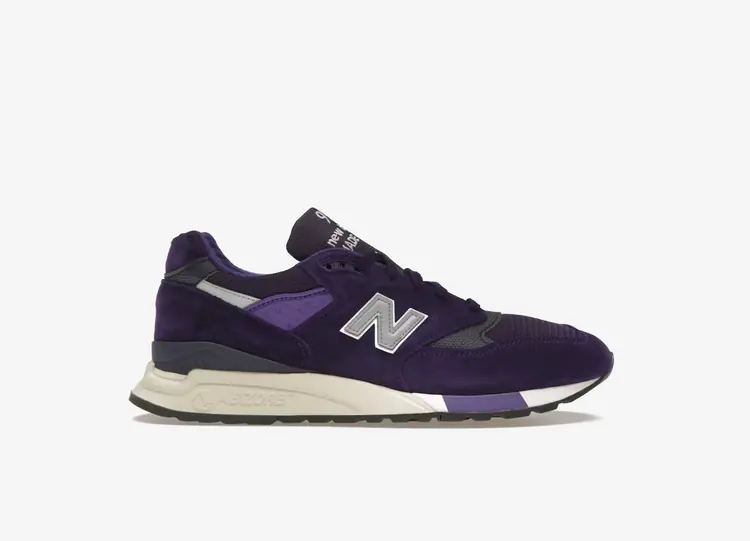 La Teddy Santis x New Balance 998 Made in USA 'Plum Purple' réactualise la running lifestyle avec une touche de couleur audacieuse. Nommé directeur créatif de la célèbre ligne Made in USA de New Balance en 2021, Santis habille la silhouette patrimoniale d'une empeigne en mesh violet avec des superpositions de daim ton sur ton. Un logo " N " argenté mat orne le panneau arrière, tandis qu'un graphique " Flying NB " est brodé sur la languette du talon. La semelle intermédiaire ABZORB de New Balance offre un amorti léger à chaque pas. NEW BALANCE 998