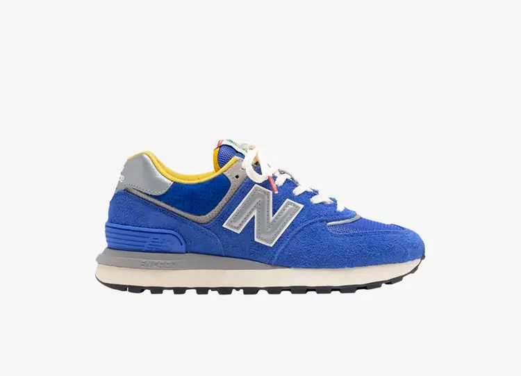 La Bodega x New Balance 574 Legacy 'Internationally Known, Locally Respected' est une collaboration de baskets avec une construction révisée qui se rapproche de la forme OG de la chaussure vintage. Une finition bleu vif imprègne une tige fabriquée à partir d'une combinaison de daim hirsute, de maille aérée et de daim perforé. Le logo 'N' et la languette du talon sont en argent réfléchissant, tandis que la doublure du col en textile révèle un contraste de jaune. La midsole ENCAP est renforcée par une outsole en caoutchouc conçue pour le trail running. NEW BALANCE 574
