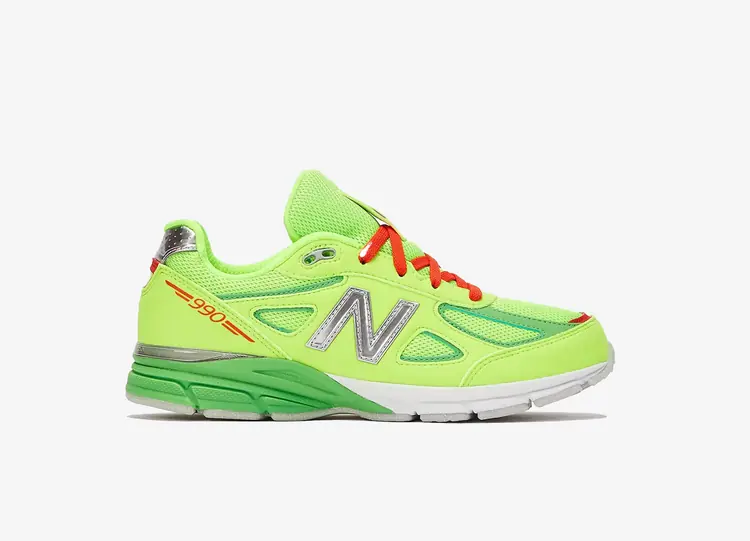Pour les fêtes, le shop américain dévoile une DTLR x New Balance 990v4 Festive, uniquement destinée aux enfants. Après avoir récemment collaboré avec les bostoniens autour d’une NB 9060, l’enseigne de streetwear maintien le rythme. Bien qu’aucun lien officiel ne soit confirmé, la silhouette adopte des couleurs rappelant celles du Grinch. On retrouve sur la tige en mesh du vert clair, de même que pour les empiècements en daim premium. Des détails rouges ornent les lacets et les brandings complétés par un colorway argenté. Les semelles intérieures, quant à elles, nous plongent directement dans l’esprit de Noël avec des sapins, des étoiles et des flocons de neige. Pour terminer, le design se pose sur une semelle ENCAP blanche, verte et grise. NEW BALANCE 990V4