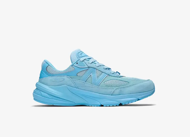 La Action Bronson x New Balance 990v6 Made in USA 'Lapis Lazuli' est la deuxième version de la chaussure de course lifestyle du créateur multi-hyphénate. Les lacets en corde bicolores sécurisent la tige, qui présente une base en mesh marine avec un garde-boue en daim ton sur ton et une superposition à l'avant-pied en daim sarcelle microperforé. L'arrière de la chaussure présente des accents vibrants, notamment une languette arrière en mesh lavande et un clip de talon bleu poudre portant l'inscription "NB Made in the USA". La marque Baklava d'Action Bronson se trouve sur la languette et la semelle intérieure. L'amorti léger est assuré par une semelle intermédiaire ENCAP volumineuse, agrémentée d'une touche d'outremer le long du talon. NEW BALANCE 990V6