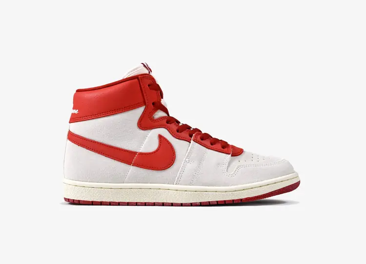 La Jordan Air Ship PE SP Every Game 'Dune Red' présente une palette bicolore simpliste avec une construction rafraîchie. Au lieu d'une construction traditionnelle en cuir, cette chaussure haute utilise une tige en daim dans une finition Summit White subtile. Des détails en cuir craquelé de couleur Dune Red apparaissent sur le contour des yeux, le Swoosh et le col. Ce dernier est marqué de la broderie "Every Game", tandis qu'une étiquette Nike Air tissée orne la languette en nylon respirant. La chaussure de basket vintage est montée sur une semelle intermédiaire blanc cassé, renforcée sous le pied par une semelle extérieure en caoutchouc cramoisi très adhérente. NIKE AIR SHIP