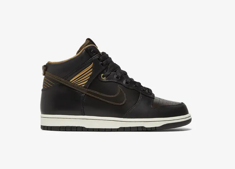 La Nike Dunk High SB 'Sweet Tooth' s'inspire du candy corn, l'éternelle friandise d'Halloween. La tige en cuir associe un avant-pied blanc à un mélange dégradé d'orange et de jaune sur le milieu du pied et le talon. Des empreintes de dents se trouvent sur la zone des orteils, tandis que la languette de la Nike SB comporte un message d'avertissement à l'intérieur qui rappelle aux porteurs de la chaussure de ne pas accepter de bonbons de la part d'inconnus. À l'intérieur de la chaussure, les semelles intérieures personnalisées affichent un imprimé sur tout le pourtour de la confiserie en forme de cône. NIKE SB DUNK HIGH