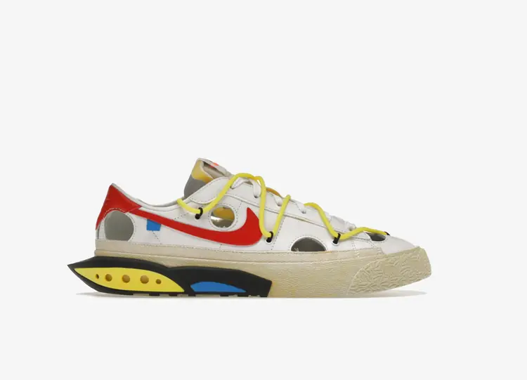 La Nike Blazer Low Off-White White University Red présente une esthétique multidisciplinaire et multisports, un motif central dans l'œuvre de Virgil Abloh. Intégrant des aspects du basket-ball, du skate-board et des silhouettes de trail running, la Blazer Low Off-White fusionne une pièce de talon Air Terra Humara TPU avec une semelle vulcanisée classique pour une base unique. Sur la tige en cuir blanc, des trous perforés sont éparpillés, comme sur la Air Jordan 5 Off-White. Un système de surlacs accentué, une languette en mousse apparente, une étiquette à fermeture éclair et un onglet Swoosh ajoutent la signature Off-White à ce classique modifié. NIKE BLAZER LOW