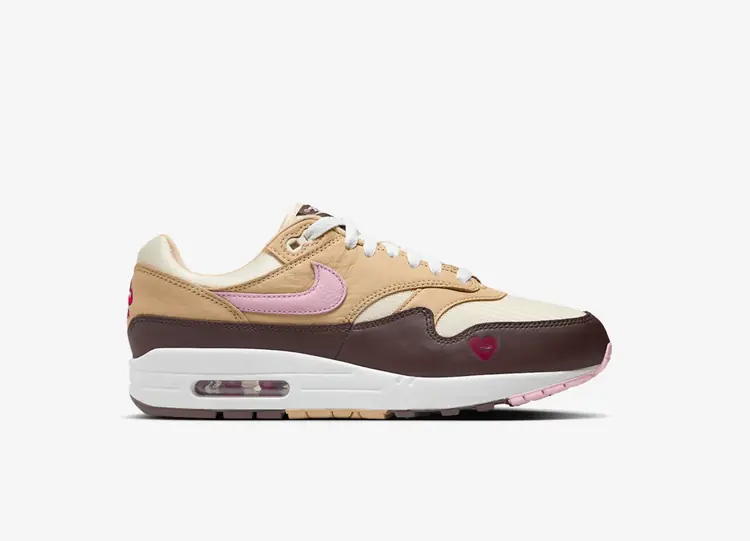 S’inspirant de la glace napolitaine, cette Air Max 1 ne laisse rien au hasard. En effet, des superpositions en cuir vanille, fraise et chocolat viennent illustrer les parfums de ce succulent dessert, le tout disposé sur une base en mesh sail. Toutefois, le point culminant laisse entrevoir des cœurs rouges ajustés sur la pointe du pied et l’insole tandis que le design prend place sur une semelle aux couleurs de la Neapolitan ice cream. NIKE AIR MAX 1