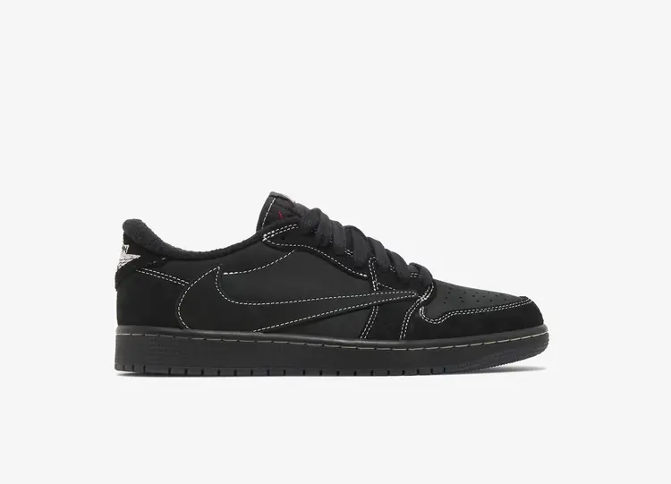 Tout d’abord, le rappeur de Houston a choisi d’appliquer le même concept que la Travis Scott x Air Jordan 1 High sortie précédemment en mai. On retrouve ainsi le swoosh inversé sur le panneau extérieur. Cependant, il se décline cette fois en blanc. La lowtop affiche aussi une combinaison de suede noir et marron. Par ailleurs, cette dernière s’accompagne d’un logo Wings et du branding « Cactus Jack » rouges. Enfin, une midsole vieille et une outsole marron finalisent le design imaginé par La Flame. AIR JORDAN I