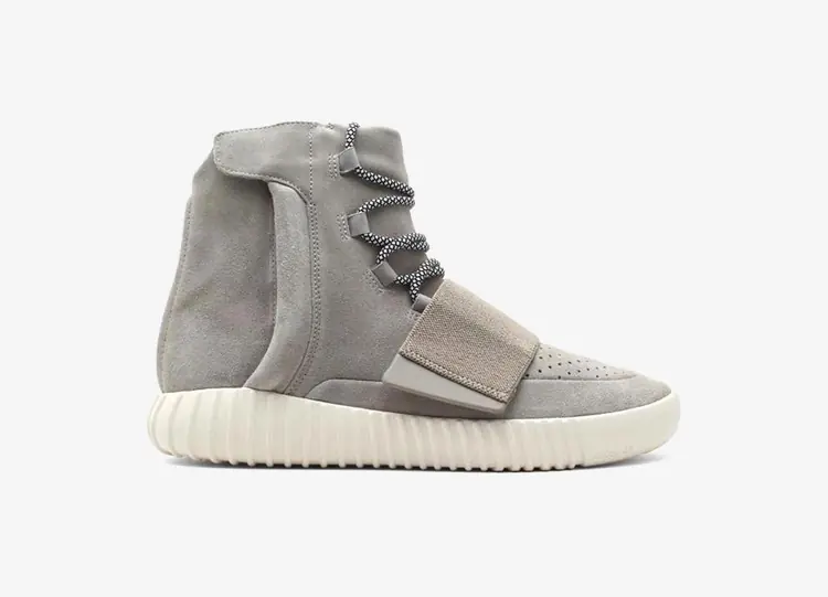 02/14/2015 La toute première chaussure adidas collaborative de Kanye West, la Yeezy Boost 750 'OG' est sortie dans le monde entier en février 2015 en quantités extrêmement limitées. La construction imposante, qui ressemble à une botte, s'écarte radicalement des modèles précédents de Kanye West, avec une tige en suédine marron clair montée sur une semelle en caoutchouc partiellement nervurée et équipée de la technologie Boost, dans une subtile teinte Off-White. Le design minimaliste est accentué par des lacets en corde surdimensionnés, des détails perforés sur la boîte à orteils et une large sangle au milieu du pied dans une fabrication en sergé tonale. Une fermeture éclair cachée sur le côté latéral facilite l'enfilage et le retrait. YEEZY 750